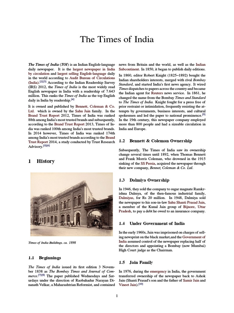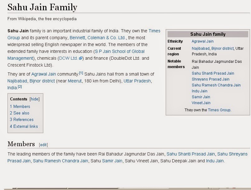 Sahu Jain Family Newspaper - Ltd., the most widespread selling english newspaper in the world.